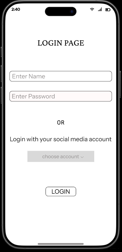 This is the login screen where customer can sign-up by simply entering their name and password or with the help of their social media account. The login page is useful to make customer's personal data secured. A customer has too compulsorily login before moving to the home page, without login they cannot move to the home page, or they won't be able to make any order.