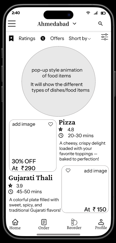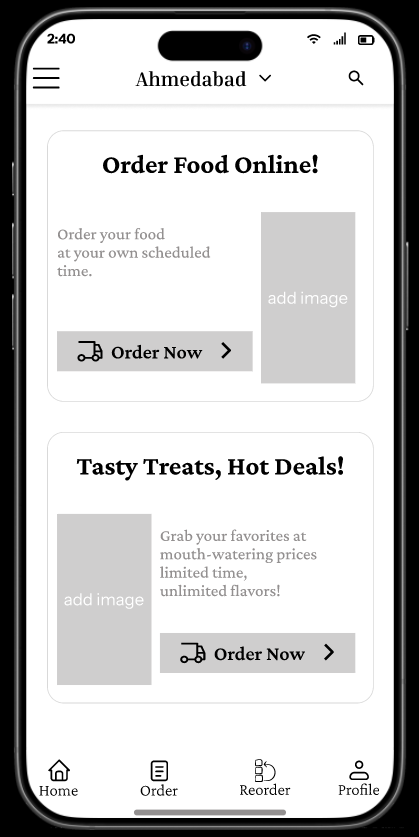 This is the order again screen. This screen will show customer all the food items that they have ordered before. It helps customer in such a way that they can easily and quickly re-order their favorite food dish without searching it again.
